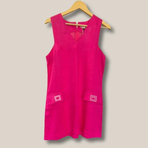 Clássico reinventado em rosa vibrante O vestido curto em cambraia de linho puro da Sensi traz a elegância atemporal do estilo Chanel em um tom pink cheio de personalidade. A trama leve do linho adiciona conforto e sofisticação, enquanto o corte impecável valoriza a silhueta com um toque moderno. Ideal para ocasiões em que você quer unir feminilidade e classe, com a garantia de um produto artesanal e consciente. TAM: P. Tecido: Cambraia de linho puro. Localização: Loja Cambucá, Jardins, SP